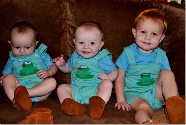 I took some fun shots on Sunday of all three of my sweet boys dressed for church in matching outfits from my parents and moccasins from Chip’s parents. Elijah was not interested in having his picture taken until I bribed him so he is not in the first few. Ahhh what a Mama will do to get a picture of all the kiddos together!